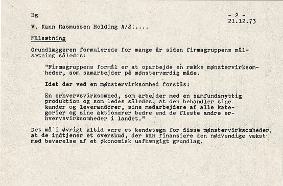 The purpose of the Group is to develop a number of model companies, which cooperate in an exemplary manner.