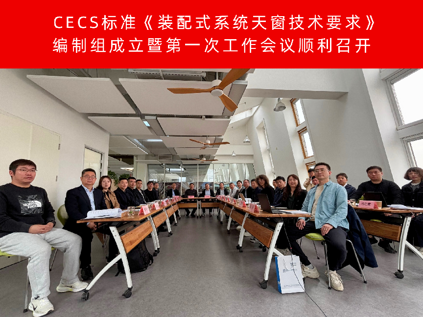 2026年4月14日,由威卢克斯(中国)有限公司、建科环能科技有限公司主编的CECS标准《装配式系统天窗技术要求》(以下简称“标准”)编制组成立暨第一次工作会议在河北廊坊顺利召开。中国工程建设标准化协会建筑幕墙门窗专业委员会主任委员王洪涛、秘书长刘会涛出席会议。威卢克斯(中国)有限公司执行总裁赵金彦、建科环能科技有限公司建筑幕墙门窗研究中心主任张喜臣,以及来自科研、设计、生产、检测等单位的编制组成员近30人参加会议。本次会议由刘会涛秘书长主持。