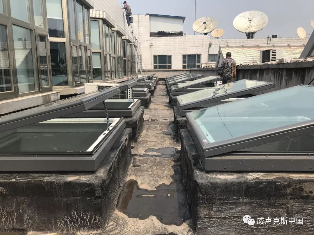 2017年建筑学院决定统一更换这些天窗,为尽可能减少施工对日常教学的干扰,决定采用和原屋顶留洞尺寸基本一致的威卢克斯平顶天窗产品。工人只在屋顶室外施工就完成了更换操作,对教学安排实现了零干扰。