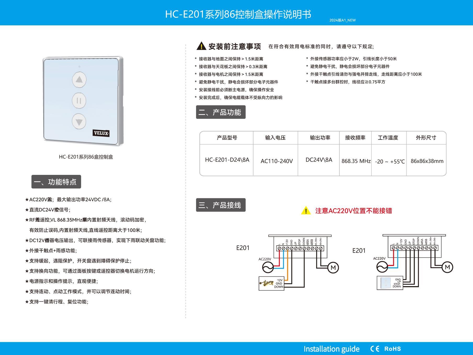HC-E201系列86控制盒操作说明书